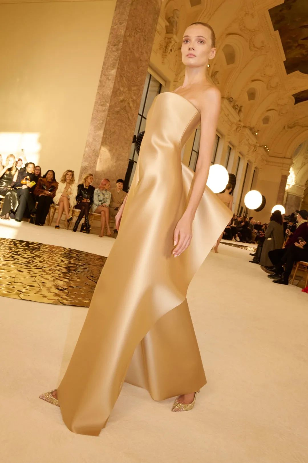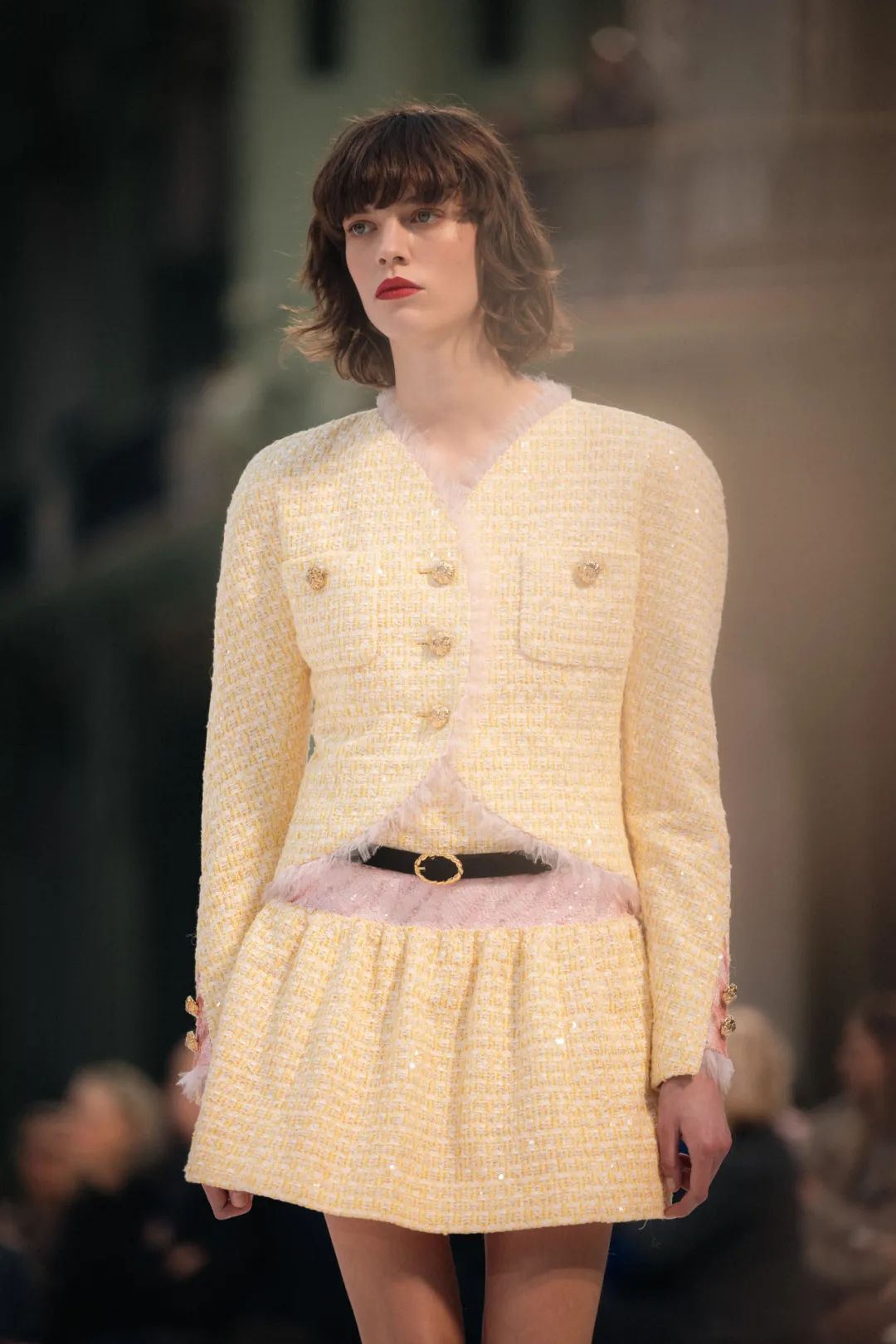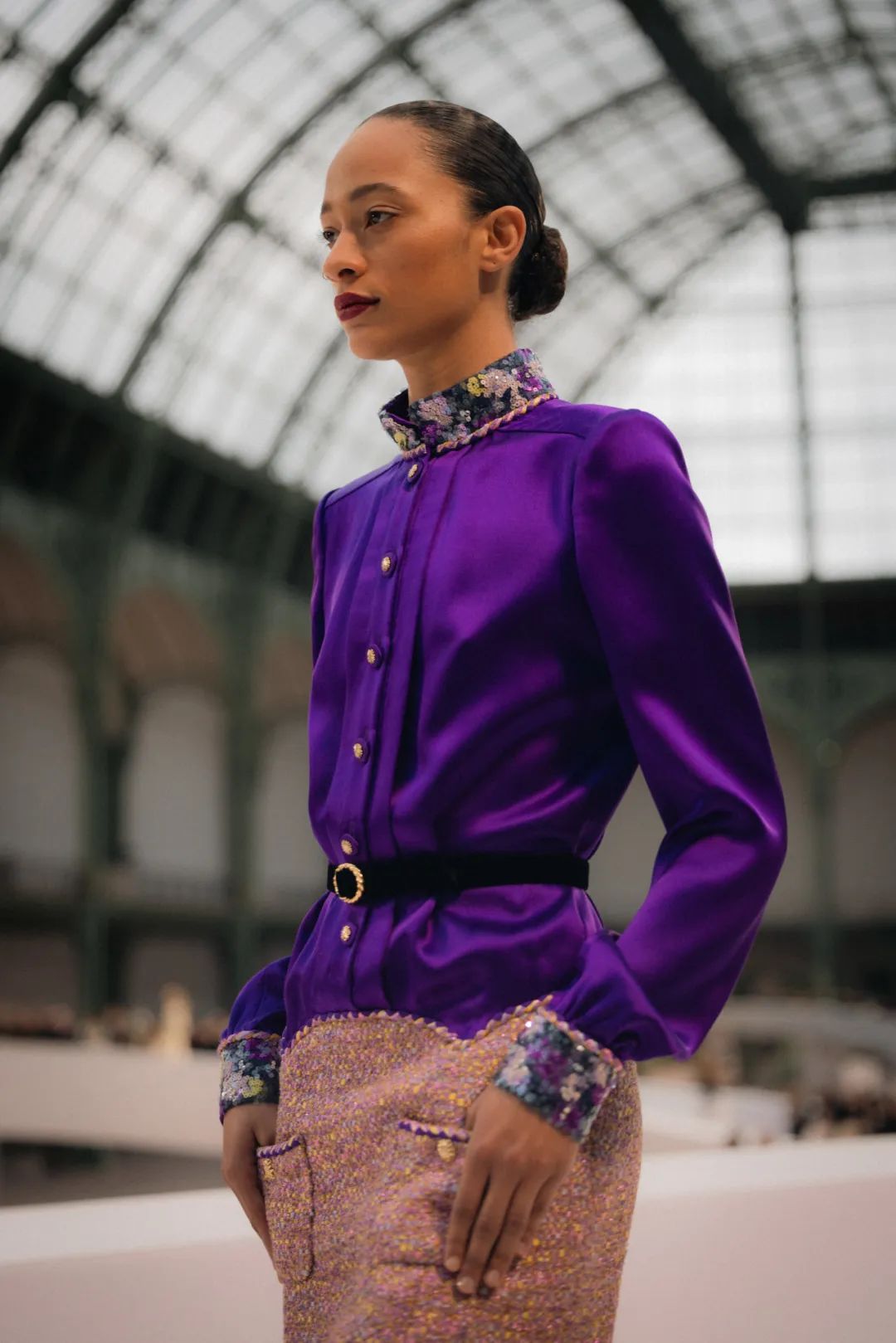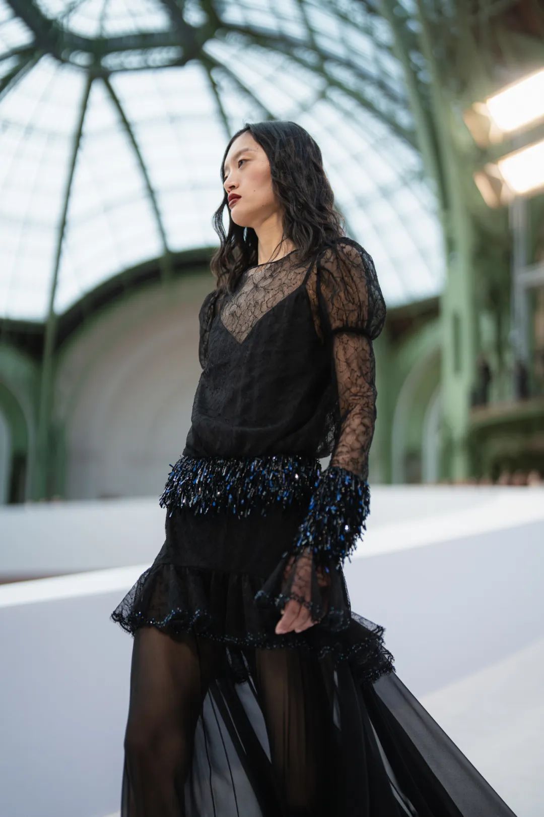 在巴黎大皇宫的中殿,由双C勾勒出T台的轮廓,犹如一个无限符号。它象征着高级定制服的无限卓越,而香奈儿作为现存历史最为悠久的高级定制服品牌,始终坚守着这份传承。秀场由舞美设计师Willo Perron构思,令人联想到精品部创意工作室此次选择创新演绎的色环。作曲家Gustave Rudma与Michel Gaubert合作,为发布会创作了原创曲目。
