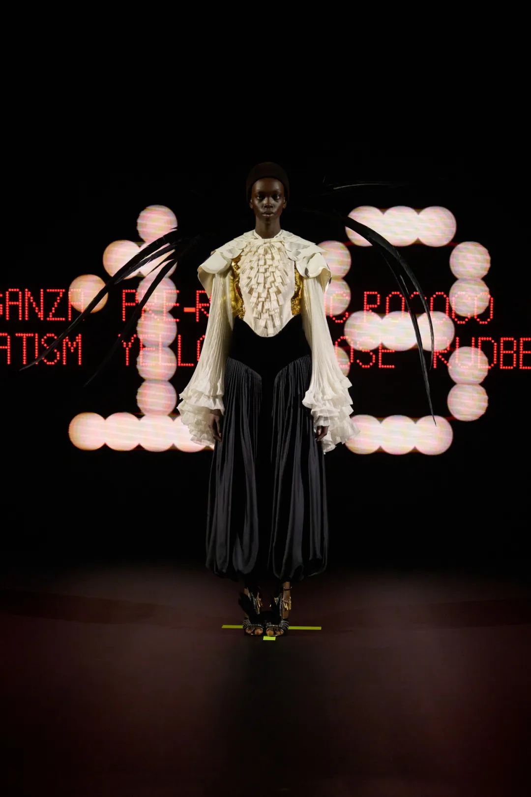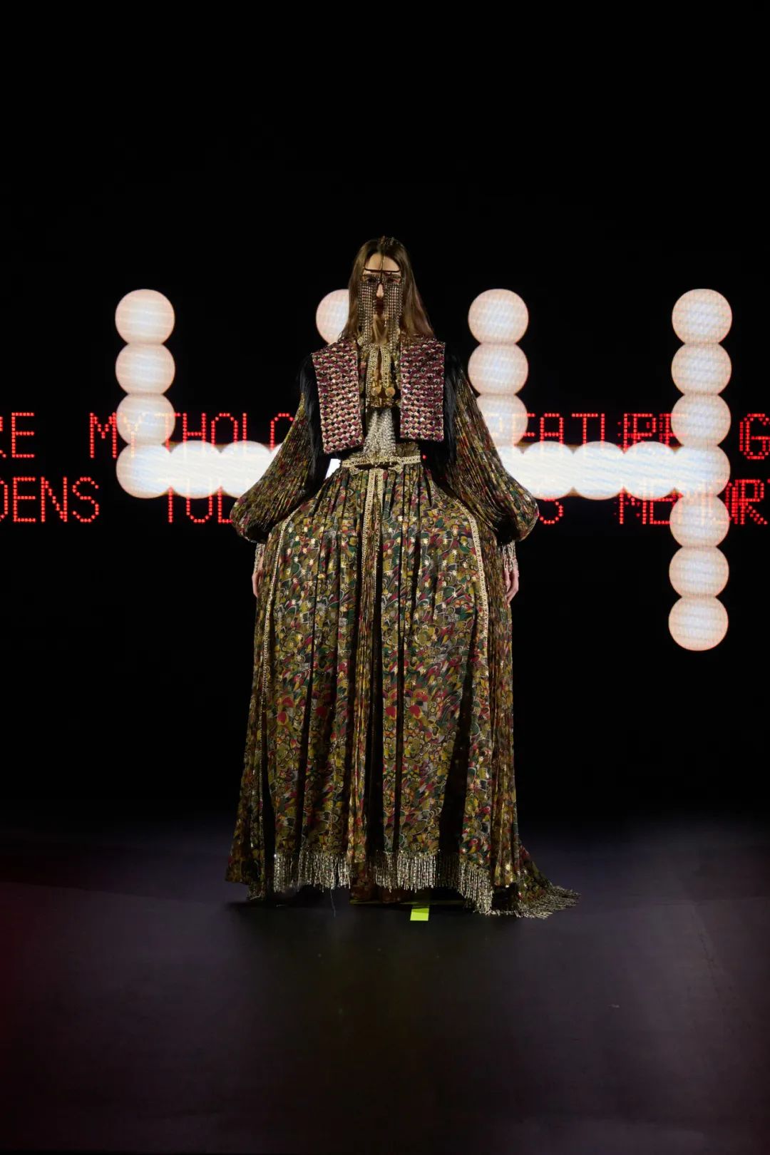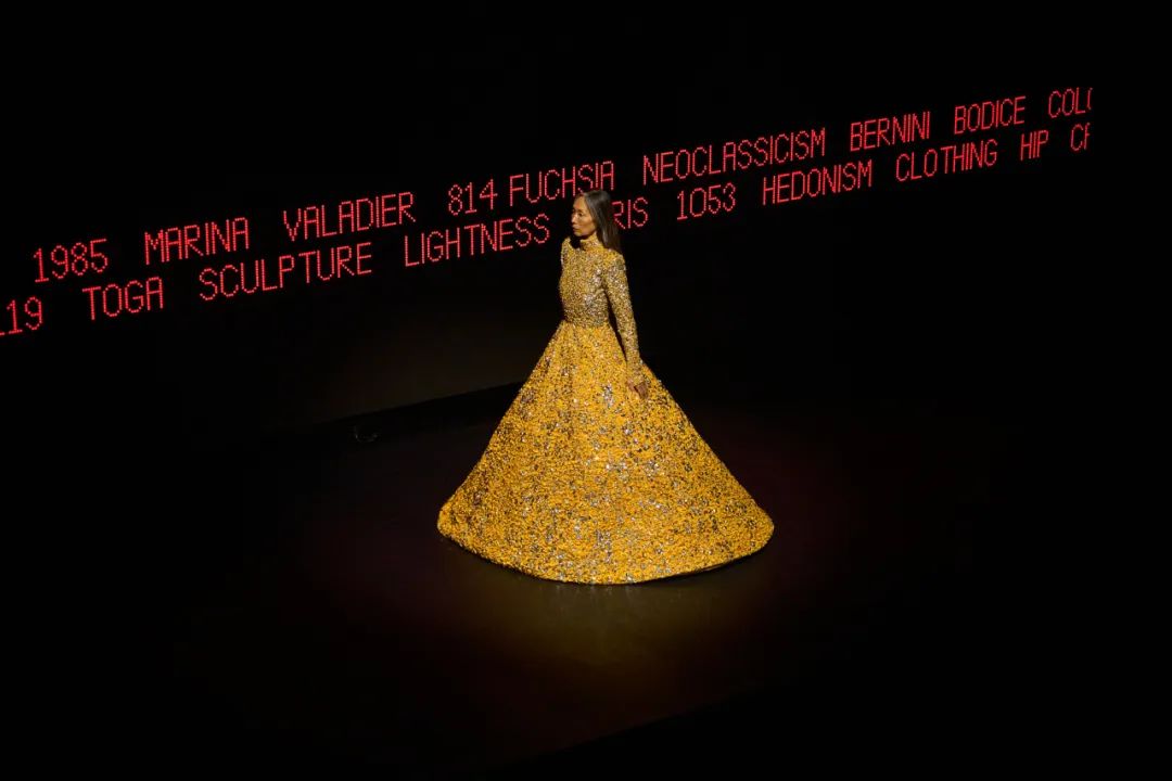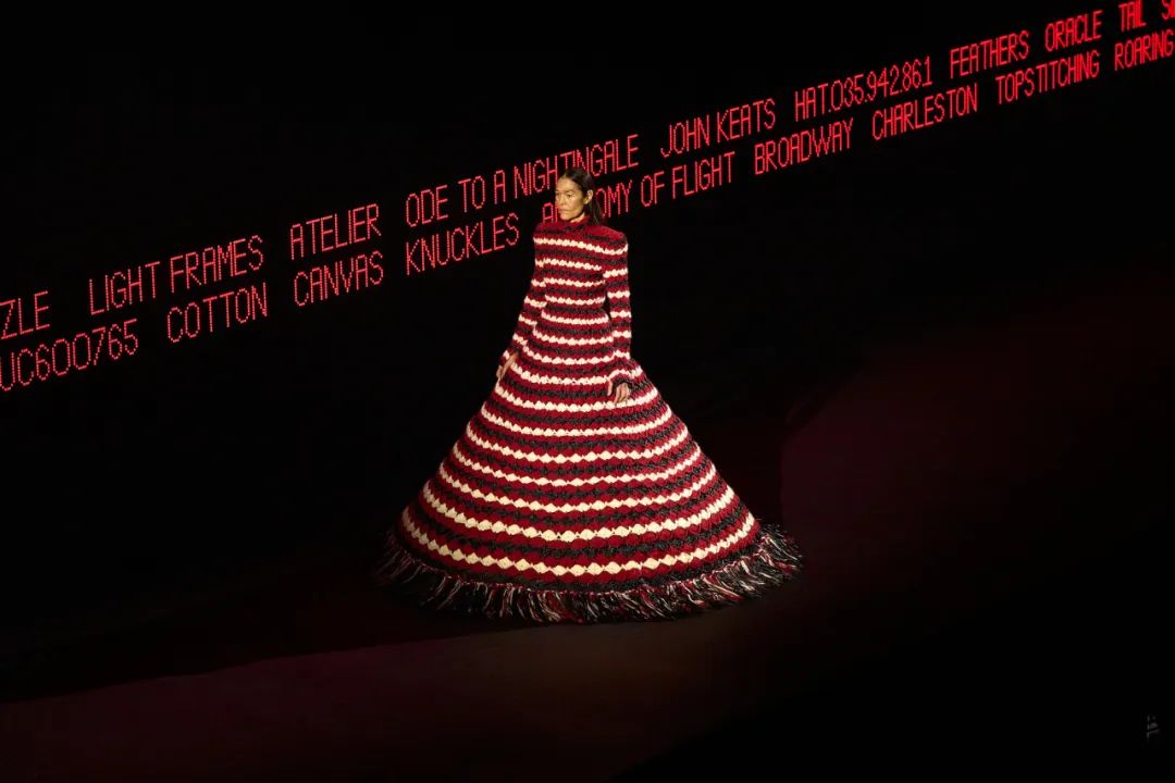 Alessandro Michele执掌Valentino以来的首个高定系列,本季秀场以「VERTIGINEUX」(列表的诗意)为主题,灵感来自翁贝托·艾柯(Umberto Eco)的《无限的列表》。“列表是文化的根源,是艺术史和文学史的组成部分。那么文化追求的是什么呢?它力求让无限变得易于理解。它希望建立秩序——并非总是如此,但往往如此。作为人类,我们如何应对无限?我们如何理解那些难以捉摸的事物?列表、目录、博物馆收藏、百科全书和字典均为可选之道。它并不破坏文化,而是创造文化。”